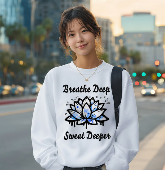 Breathe Deep Sweat Deeper Lotus Crew Sweatshirt