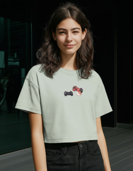 Game On Crop Top Tee Cute Gamer Squad